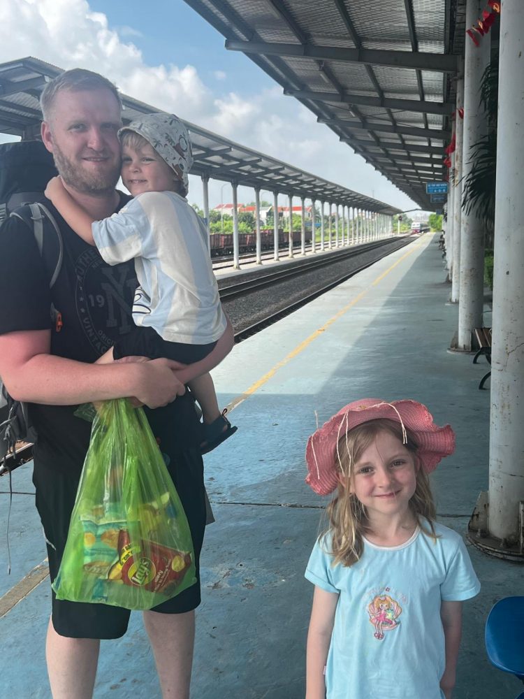 Nach dem Frühstück ging es mit dem Grab zum Bahnhof. Dieser bestand aus nur zwei Gleisen und war fast menschenleer. Unser Zug hatte ein paar Minuten Verspätung, sodass wir noch kurz gegenüber einen Kaffee holen konnten.