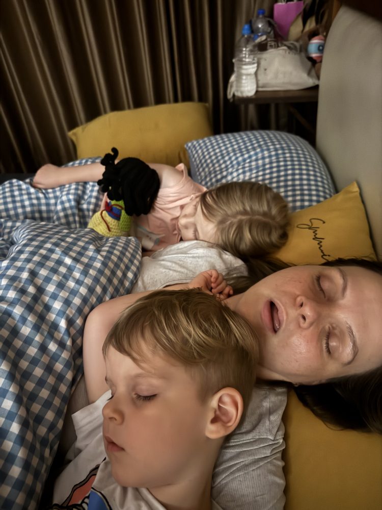 Dort machte Kathrin ein Schläfchen, während die Kinder einen Film schauten.