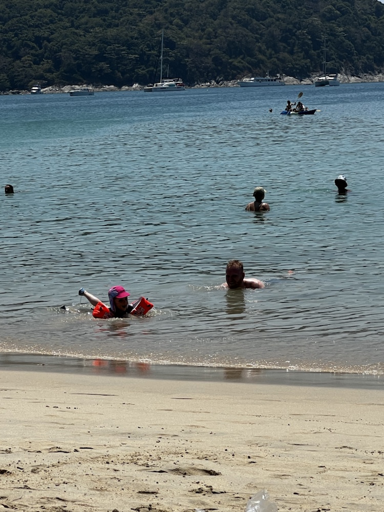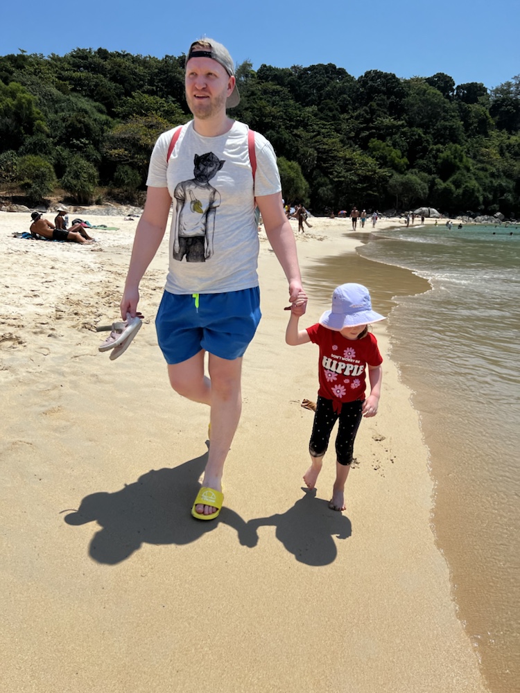 Der Strand war wirklich wunderschön. Wir mieteten uns für 200 THB (5€) zwei Sonnenschirme und genossen unseren ersten richtigen Urlaubstag.