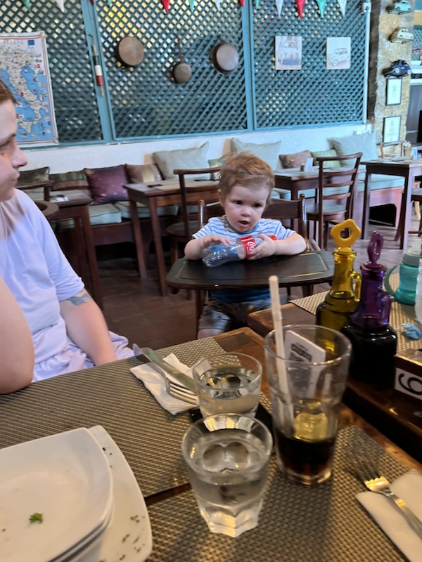 Nach der Abkühlung schlenderten wir noch den Rest erkundet, ehe wir eine Rast in der Unterkunft eingelegt haben. Leider ist Leo unterwegs schon aufgewacht, nachdem eine Frau beim Laufen an seinem Bein gezogen hat.