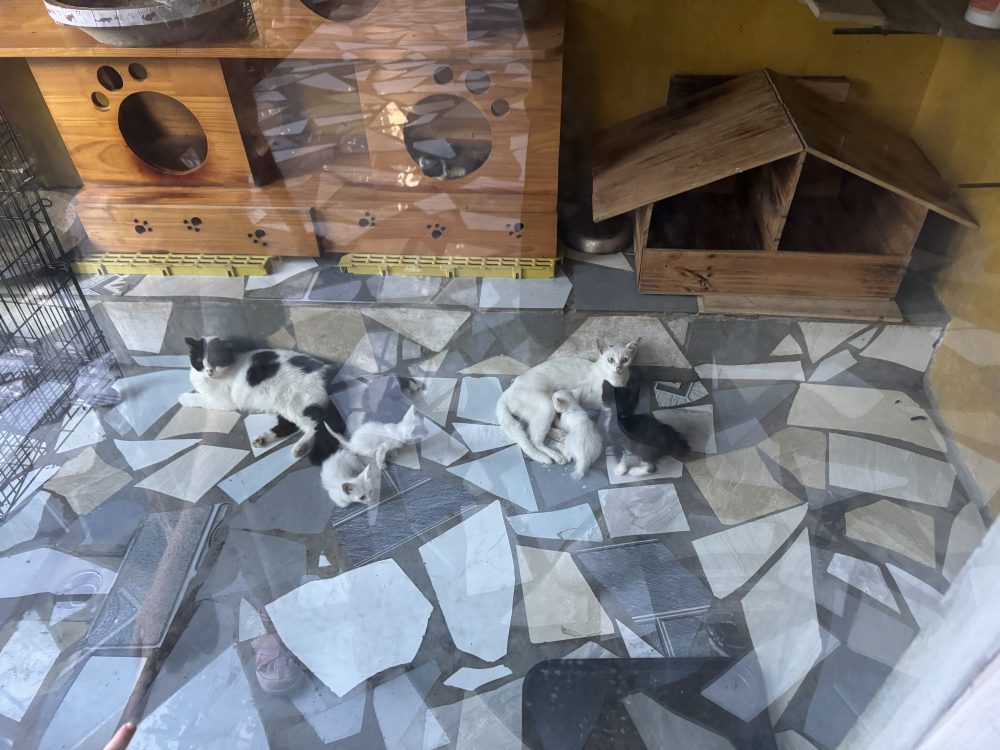 Auf dem Rückweg hielten wir noch in einem Café und haben etwas getrunken. Die Kinder konnten die hiesigen Katzen streicheln. Sogar zahlreiche Babies gab es zu bestaunen.