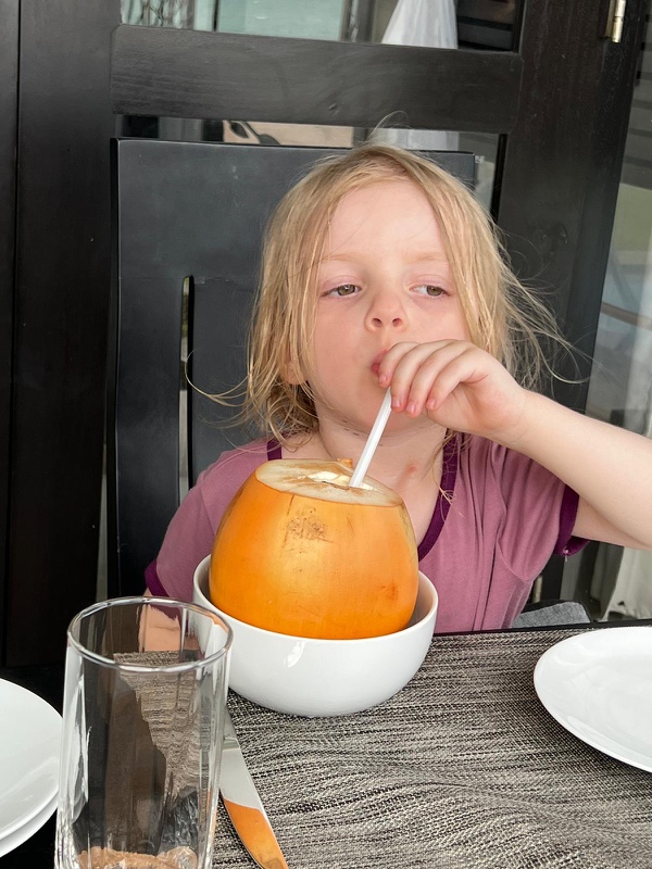 Für die Kinder folgte ein Päuschen, ehe es schon fast wieder Mittagessen gab. Danach hüpften wir alle noch in den Pool. Als die Kinder schliefen, genossen wir noch die Ruhe auf dem Balkon und fingen an, unsere Backpacks zu packen.