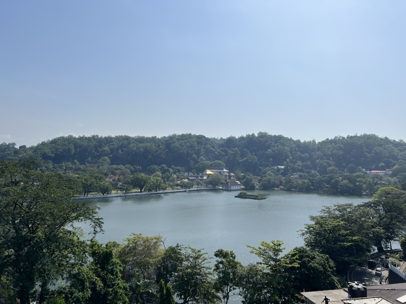 Das heutige Frühstück wurde uns auf der Dachterasse unseres Hotels serviert. Von hier hatte man eine wunderschöne Aussicht auf den Kandy Lake.