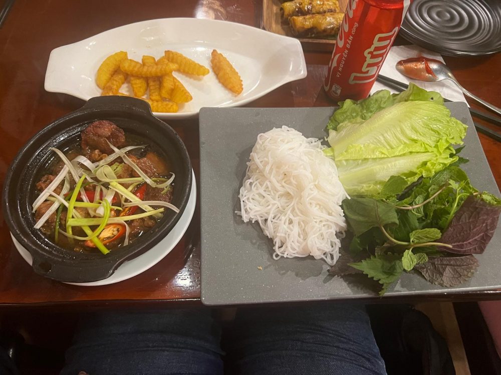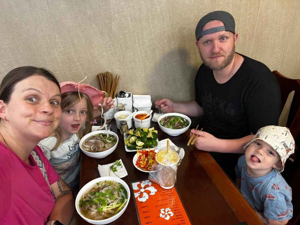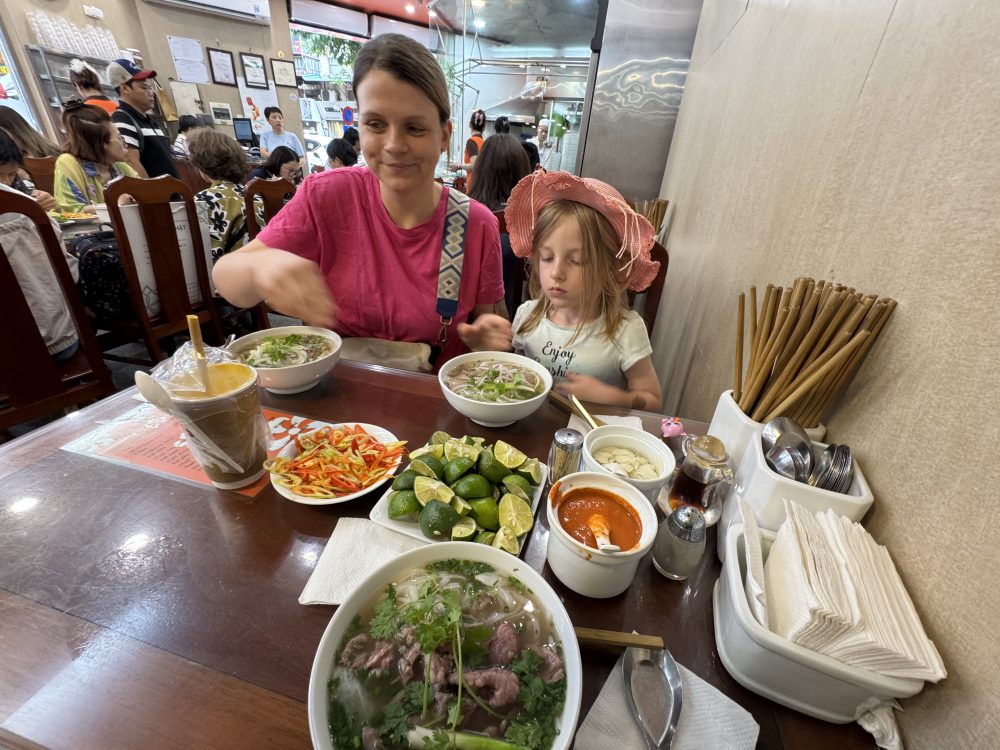 Heute Morgen herrschte ein bisschen dicke Luft bei uns und keiner konnte sich so recht aufraffen, um eine Frühstückslocation rauszusuchen. Also entscheiden wir uns, zu recht später Uhrzeit, vietnamesisch zu frühstücken. Es gab also Phô Bô.