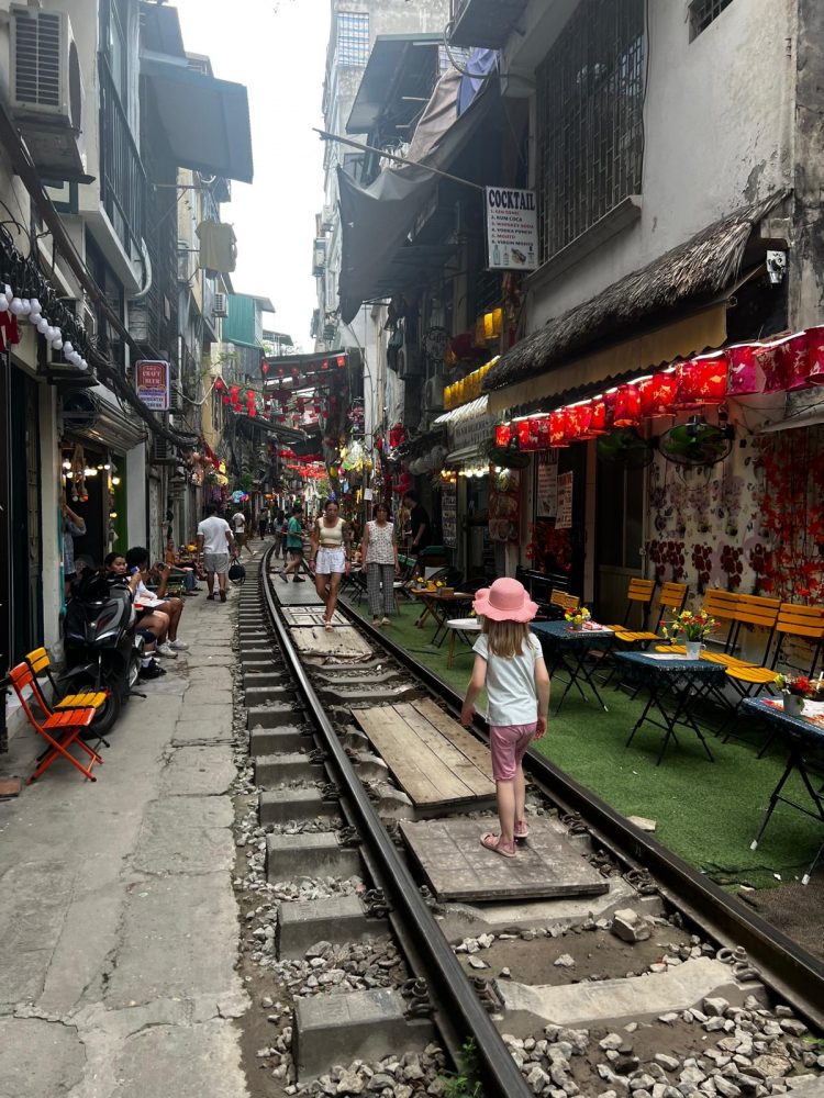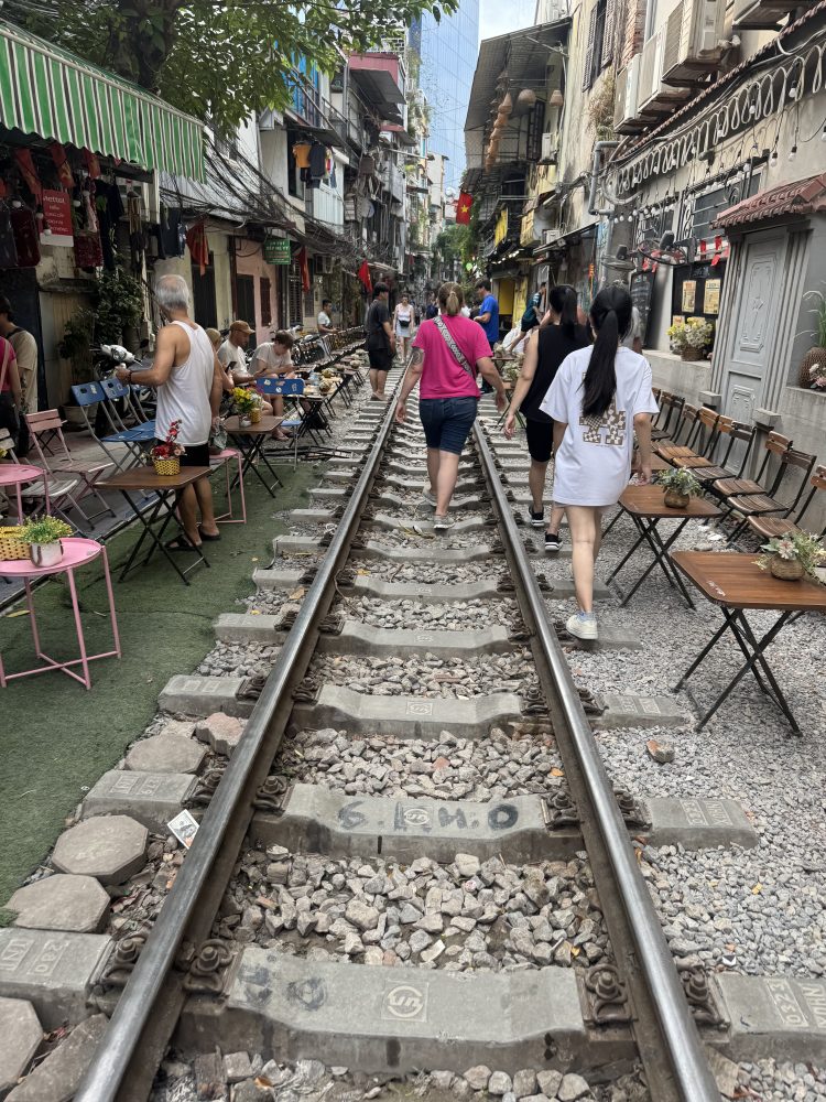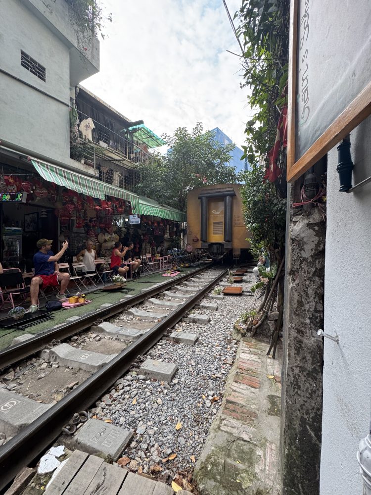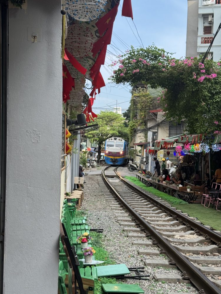 Danach ging es weiter zu einem kleinen Café an der berühmtenTrain Street. Die Train Street in Hanoi ist eine enge Gasse im Altstadtviertel, durch die mehrmals täglich ein Zug nur wenige Zentimeter an Häusern und Cafés vorbeifährt.