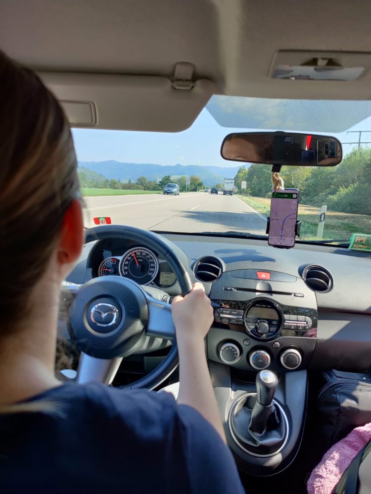 Die Strecke verläuft durch den Hochschwarzwald und ist wirklich malerisch. Allerdings kostete sie mich auch einige Nerven. Es gab zahlreiche waghalsige Kurven und ständig ging es bergauf und bergab. Manchmal hatte ich wirklich Zweifel, ob der rote Flitzer es überhaupt hoch schafft. Unsere Lunalita hat davon nicht viel mitbekommen, da sie einmal wieder ihrer liebsten Beschäftigung im Auto nachgegangen ist – schlafen.