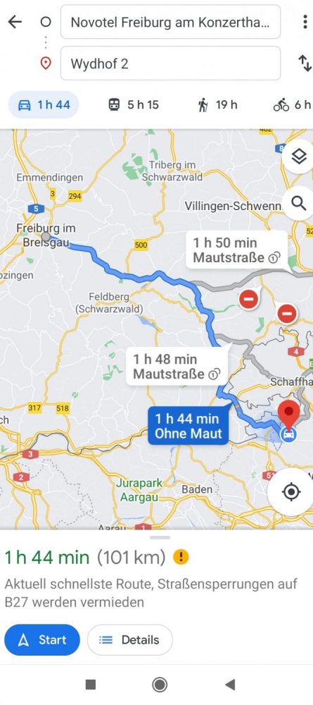 Tomas wartete mit Luna vor dem Hotel, während ich unseren roten Flitzer aus der Tiefgarage holte. Danke Hotelrabatt kostete der Stellplatz für die zweite Tage „nur“ noch 36 € (vorher 50,40 €). Ich glaub wenn man Glück hat und ein billiges Ticket ergattert, kommt man günstiger mit dem ICE nach Freiburg.
