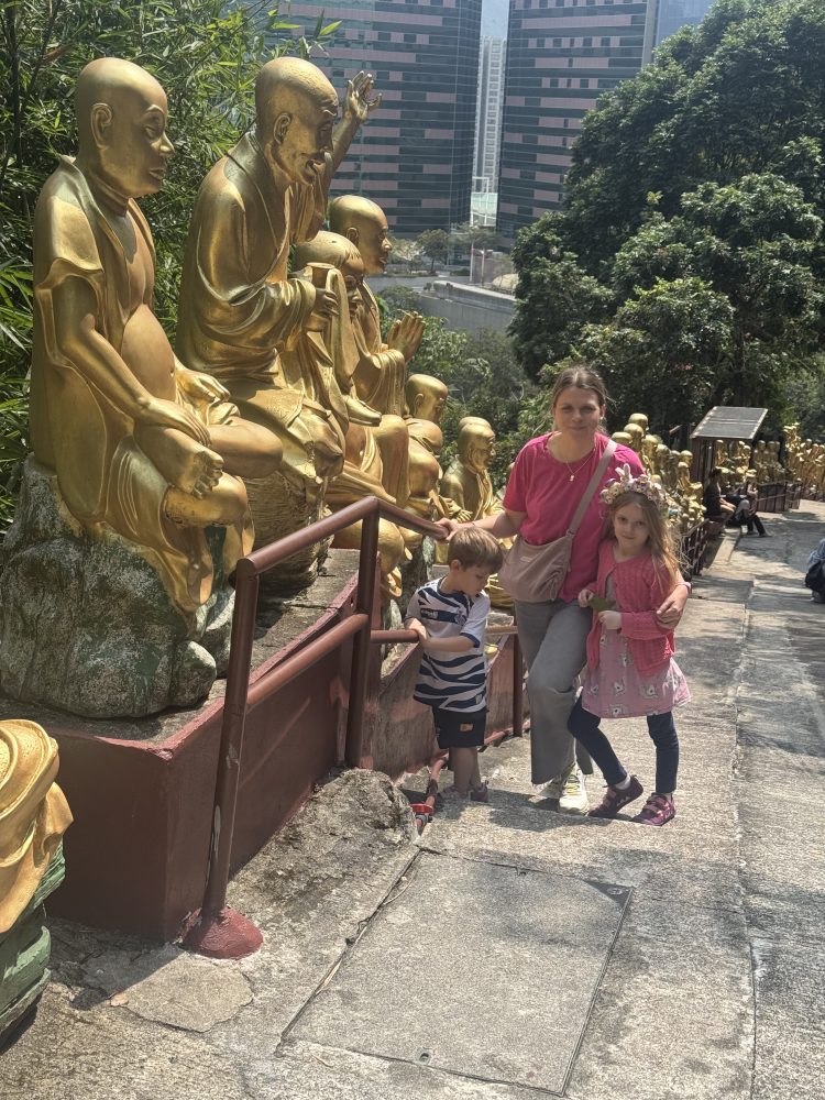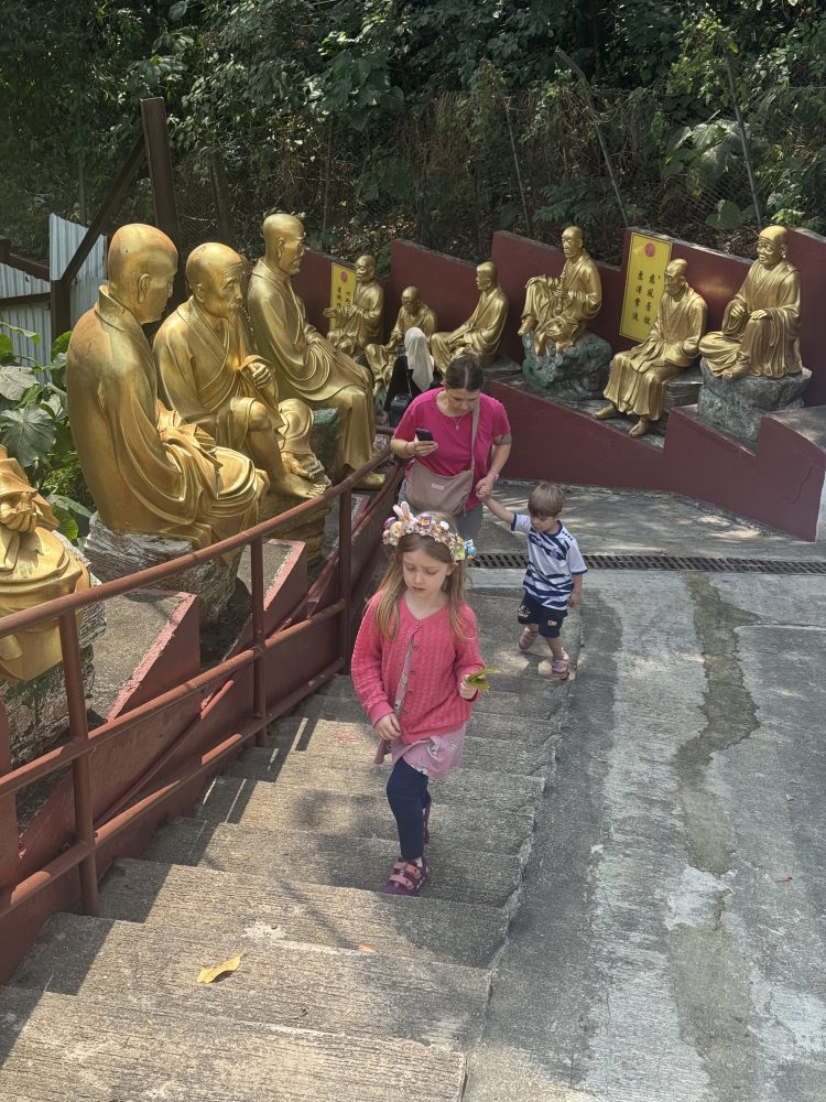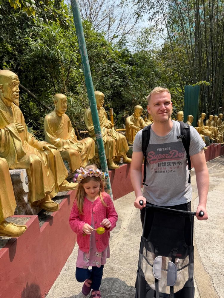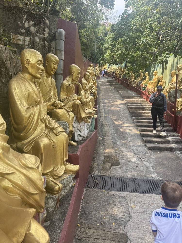 Unser heutiges Ziel war der Ten Thousand Buddhas Monastery. Hierbei handelt es sich um einen buddhistischen Tempelkomplex im Stadtteil Sha Tin in Hongkong. Der Aufstieg zum Tempel führt über eine lange Treppe, die von Hunderten goldenen Buddha-Statuen gesäumt ist, von denen jede eine andere Haltung und einen anderen Gesichtsausdruck hat. Trotz des Namens beherbergt der Komplex tatsächlich über 12.000 Buddha-Darstellungen, die in verschiedenen Hallen und Pavillons verteilt sind.