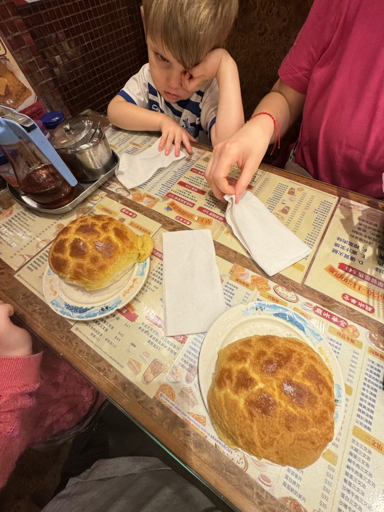 Es gab Pineapple Buns, Hong Kong French Toast und den berühmten Hongkong Kaffee Yuen Yeung. Hierbei handelt es sich um eine Mischung aus Kaffee und Milchtee, den es für uns einmal kalt und einmal warm gab.