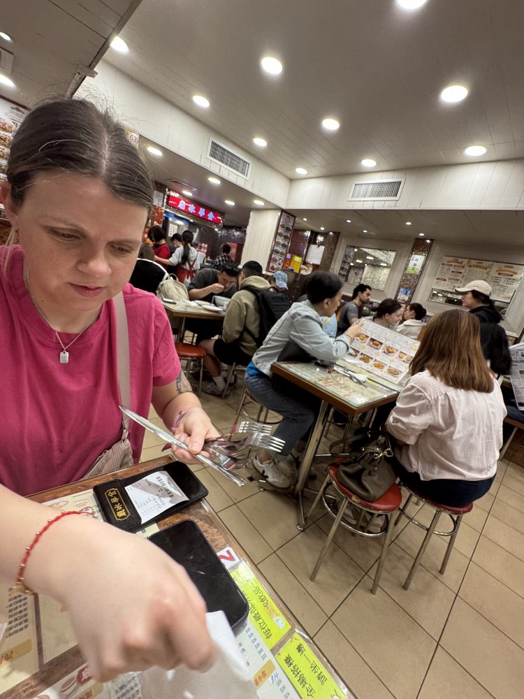 Nachdem alle endlich ausgehfertig waren, machten wir uns auf den Weg zum Frühstück. Wir entschieden uns heute mal typisch local in einem Cha Chaan Teng zu frühstücken. Hierbei handelt es sich um eine typische Hongkonger Café-Art, die einfache, schnelle und günstige Gerichte serviert. Diese Lokale sind ein wichtiger Teil der Alltagskultur in Hongkong.